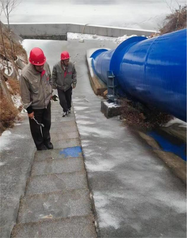 我公司巡檢員冒著嚴寒全副武裝,沿供水線仔細巡查管線損壞和防寒防凍情況,察看各路段是否受暴雪影響出現(xiàn)塌陷沉降等異常。途經(jīng)壓力管坡、閥門井、調(diào)壓池等供水建筑時,由于車輛無法靠近,巡檢員更需徒步上前,逐一檢查排氣、排水閥和檢修閥工作是否正常,是否漏水、井蓋井體是否完好,井內(nèi)是否有積水,查看調(diào)壓池內(nèi)水位是否正常。公司全體干部職工時刻保持如履薄冰的謹慎,在防范化解風(fēng)險上勇于擔(dān)責(zé)、善于履責(zé)、全力盡責(zé),以確保安全生產(chǎn)穩(wěn)定運行。