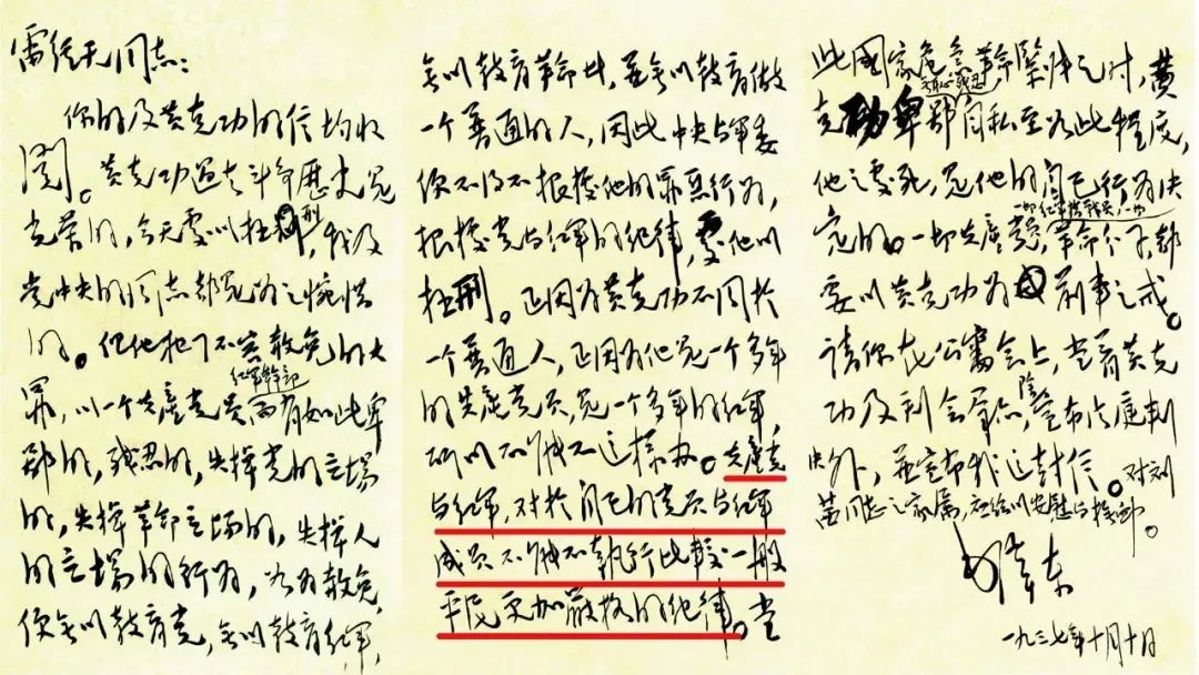 你的及黃克功的信均收閱。黃克功過(guò)去斗爭(zhēng)歷史是光榮的,今天處以極刑,我及黨中央的同志都是為之惋惜的。但他犯了不容赦免的大罪,以一個(gè)共產(chǎn)黨員紅軍干部而有如此卑鄙的,殘忍的,失掉黨的立場(chǎng)的,失掉革命立場(chǎng)的,失掉人的立場(chǎng)的行為,如為赦免,便無(wú)以教育黨,無(wú)以教育紅軍,無(wú)以教育革命者,并無(wú)以教育做一個(gè)普通的人,因此中央與軍委便不得不根據(jù)他的罪惡行為,根據(jù)黨與紅軍的紀(jì)律,處他以極刑。正因?yàn)辄S克功不同于一個(gè)普通人,正因?yàn)樗且粋€(gè)多年的共產(chǎn)黨員,是一個(gè)多年的紅軍,所以不能不這樣辦。共產(chǎn)黨與紅軍,對(duì)于自己的黨員與紅軍成員不能不執(zhí)行比較一般平民更加嚴(yán)格的紀(jì)律。當(dāng)此國(guó)家危急革命緊張之時(shí),黃克功卑鄙無(wú)恥殘忍自私至如此程度,他之處死,是他的自己行為決定的。一切共產(chǎn)黨員,一切紅軍指戰(zhàn)員,一切革命分子,都要以黃克功為前車(chē)之鑒。請(qǐng)你在公審大會(huì)上,當(dāng)著黃克功及到會(huì)群眾,除宣布法庭判決外,并宣布我這封信。對(duì)劉茜同志之家屬,應(yīng)給以安慰與撫恤。